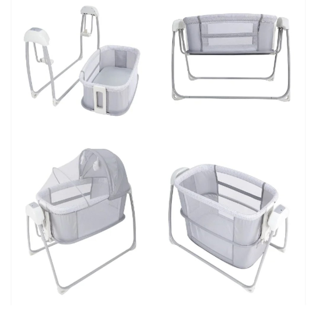 O Berço é versátil, possui duas alturas reguláveis, o cesto pode ser removido, transformando-o em um moisés. A lateral abaixa possibilitando que o berço seja acoplado à cama dos pais. A capota vem com móbile de brinquedos em plush e mosquiteiro acoplado. A base possui rodinhas com trava de segurança e pés antiderrapantes. Possui painel de controle touch screen, interação por controle remoto e bluetooth dando a opção colocar uma playlist personalizada para o bebê. Possui 15 melodias. Estrutura dobrável, facilitando o transporte. Vem com cabo USB sem adaptador e tem compartimento para 4 pilhas "AA".
