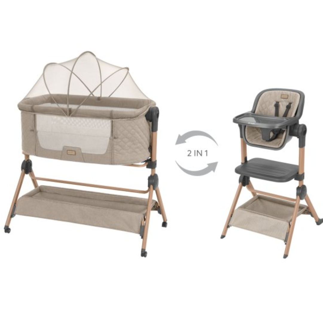 Sleat Me é um produto multifuncional 2 em 1 que se transforma de berço em cadeira alta com apenas alguns passos simples. Projetado para proporcionar conforto ao seu bebê tanto durante o sono quanto nas refeições, é a solução perfeita para otimizar espaço em casas modernas.