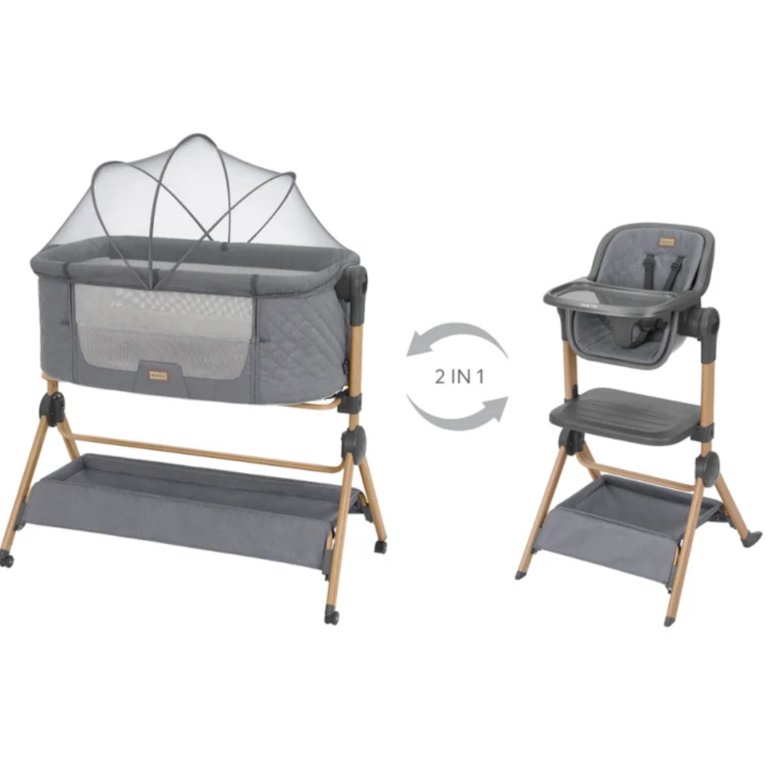 Berço SLEAT ME Grey - Berço 2 em 1 - Berço e Cadeira de Alimentação - Kikkaboo