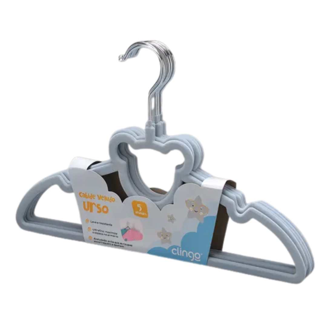 Cabide Veludo Urso Azul com 5 Unidades - Clingo