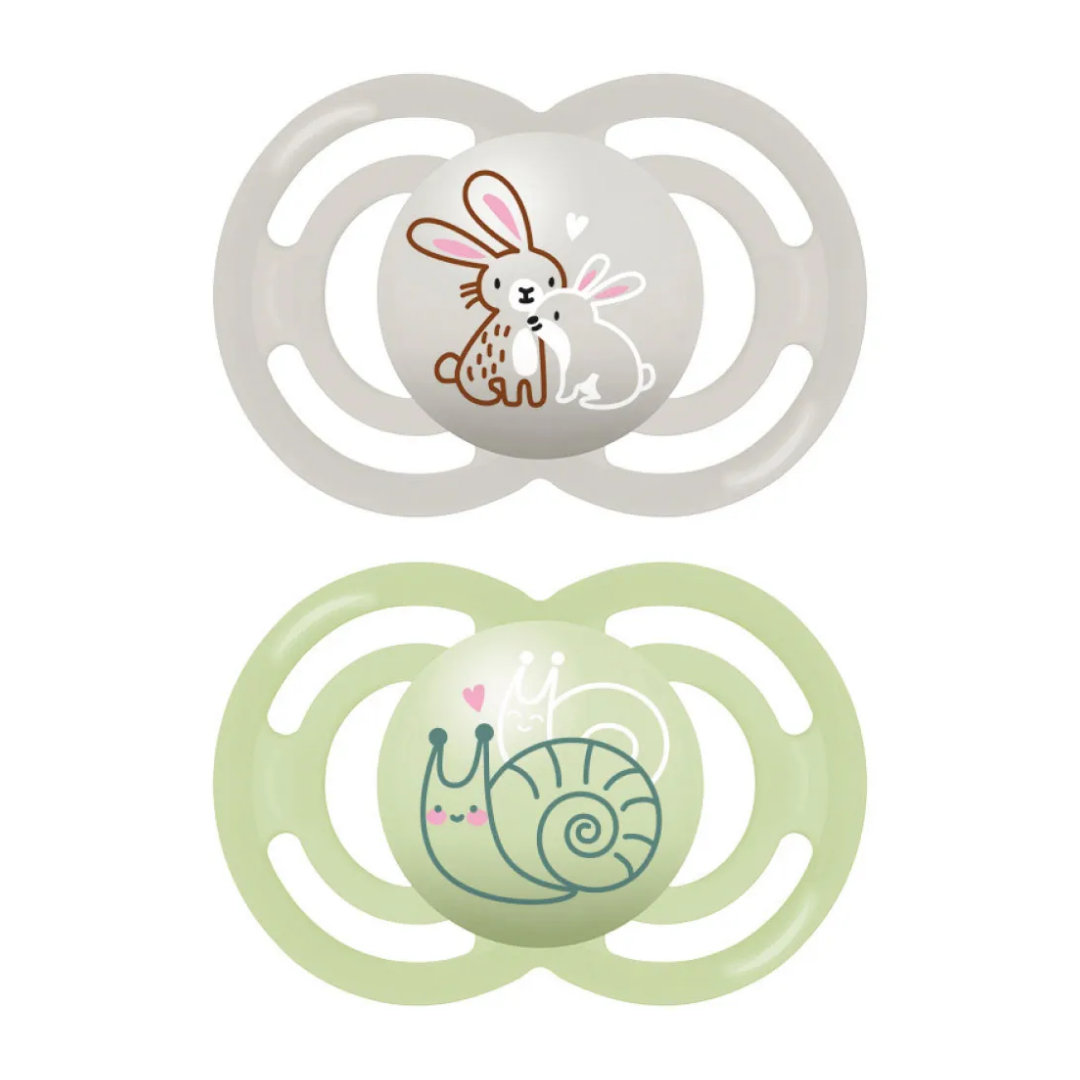 Brilha no escuro podendo ser facilmente encontrado. Fácil de se fixar ao prendedor de chupetas da MAM.