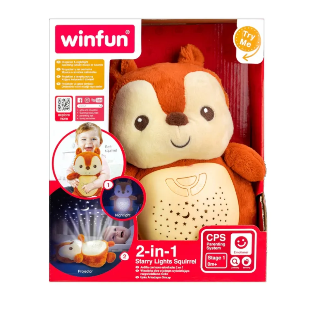 O Esquilo Dorme Comigo da Winfun Yes Toys, é uma pelúcia hipoalergênica, com função 2 em 1: