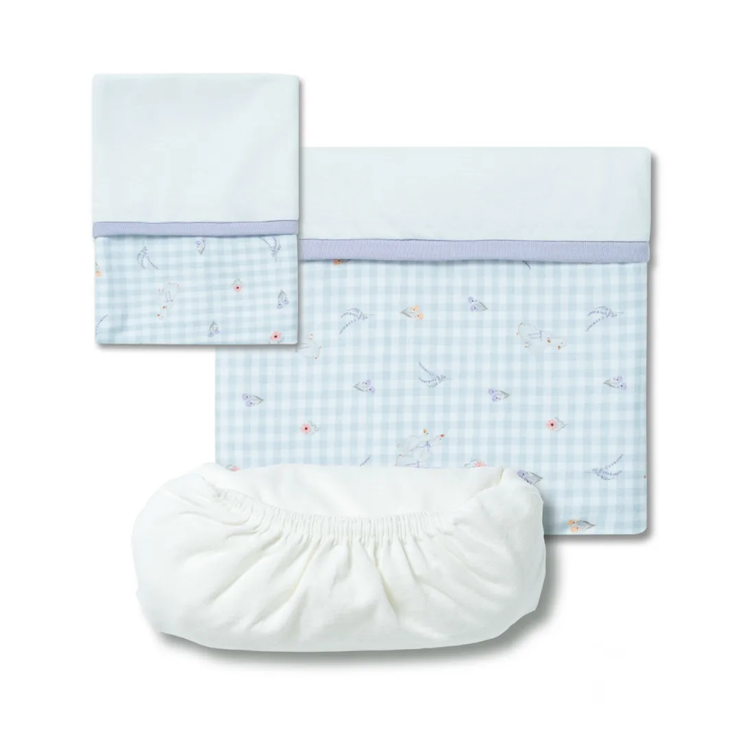O Jogo de Lençol 3 peças Hug traz conforto e cuidado para o quartinho do bebê. O kit possui um lençol de elástico, uma fronha e um sobre lençol com vira em suedine estampado. Além disso, o sobre lençol é ótimo para cobrir o bebê. Indicado para berço padrão americano.