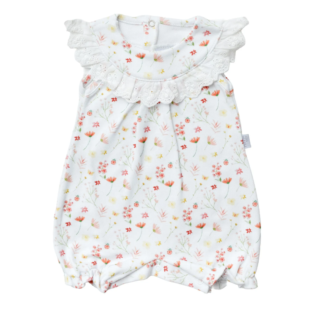 Macacão curto Algodão Egípcio Floral Joaninha - Piu Piu