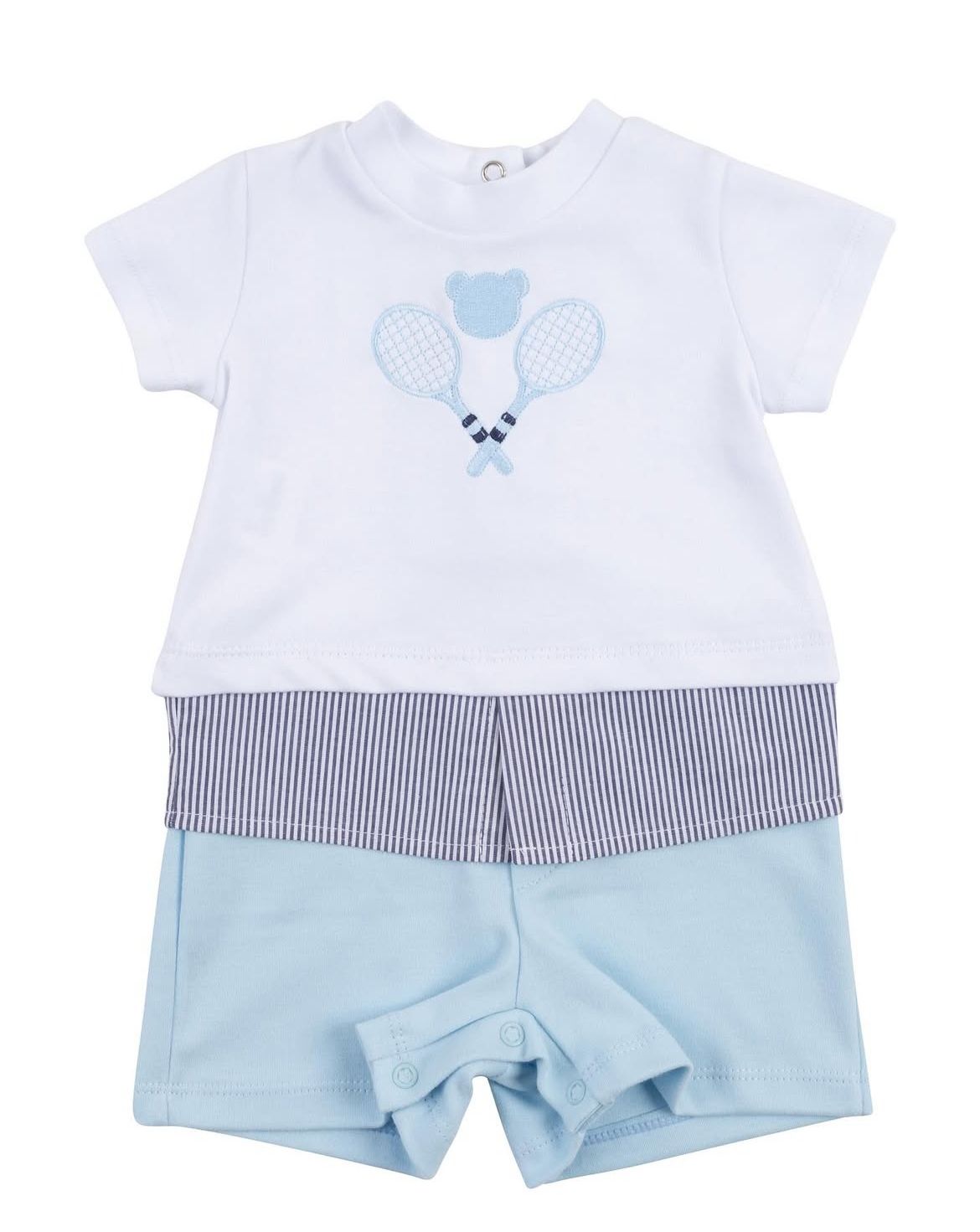 Macacão Curto Romper Branco e Azul Tenista - Coquelicot
