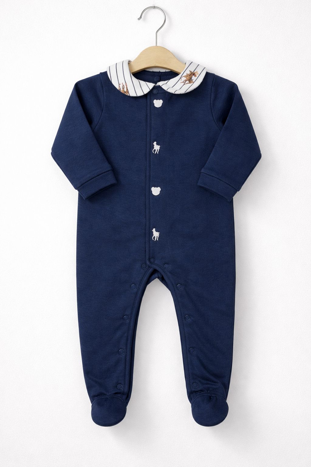 Macacão longo com Gola Azul Marinho - Cavalos e Ursinhos - Coquelicot