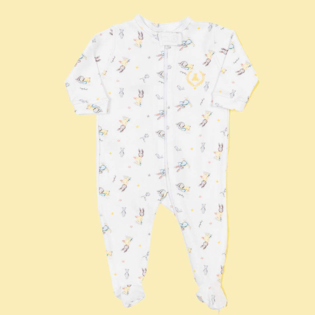 Macacão longo com zíper Coelhinhos Amarelo e Azul - Coquelicot