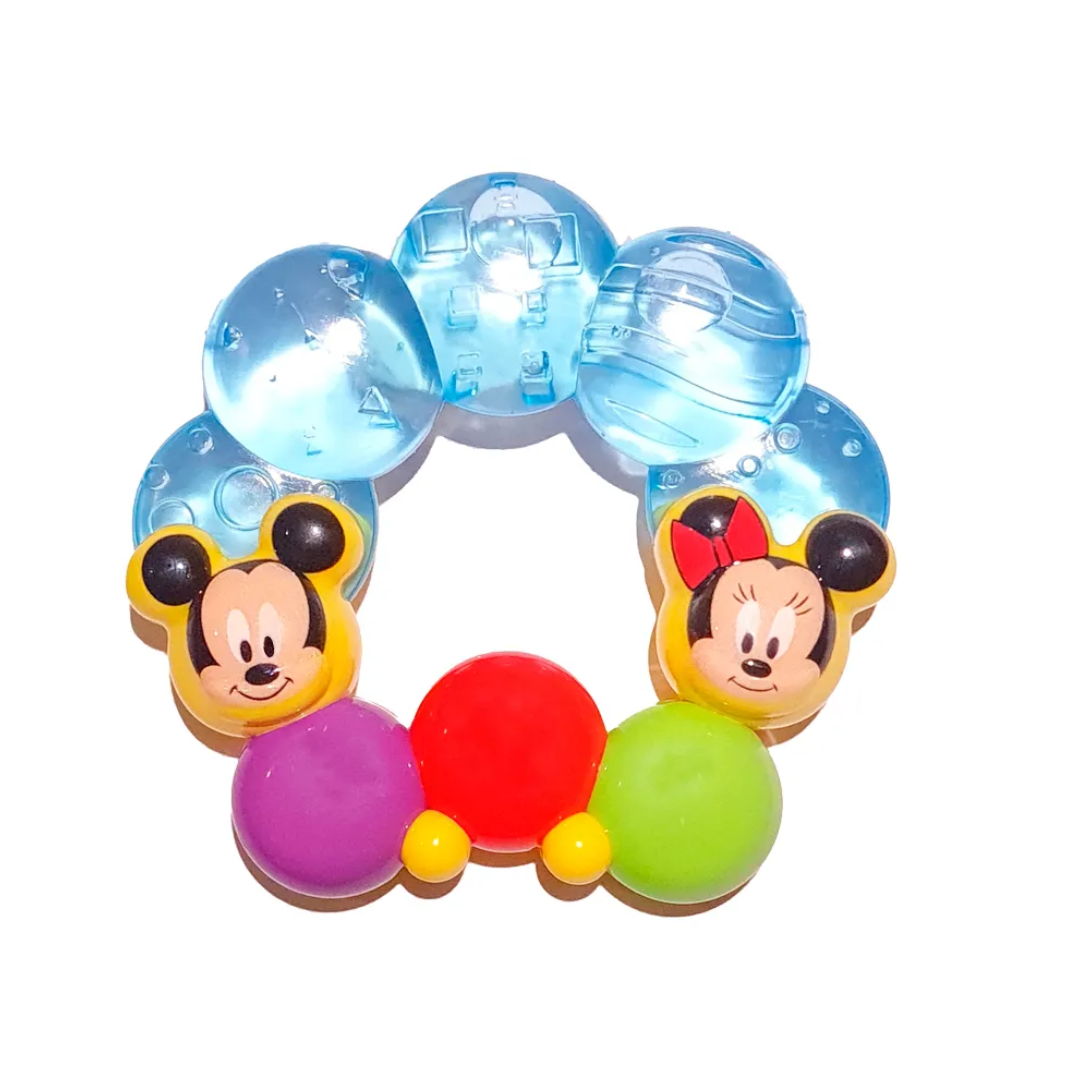 O Mordedor de água Disney Baby da YesToys é produzido em plástico macio, ideal para a gengiva do bebê, com os dentinhos em eclosão.