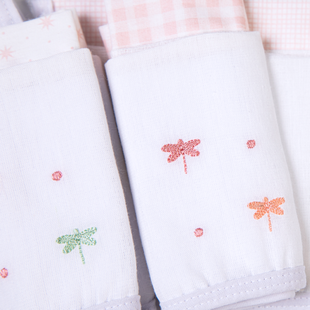 Paninho de Boca Bordados com Prendedor de Chupeta Libélulas 03 Un - Papi