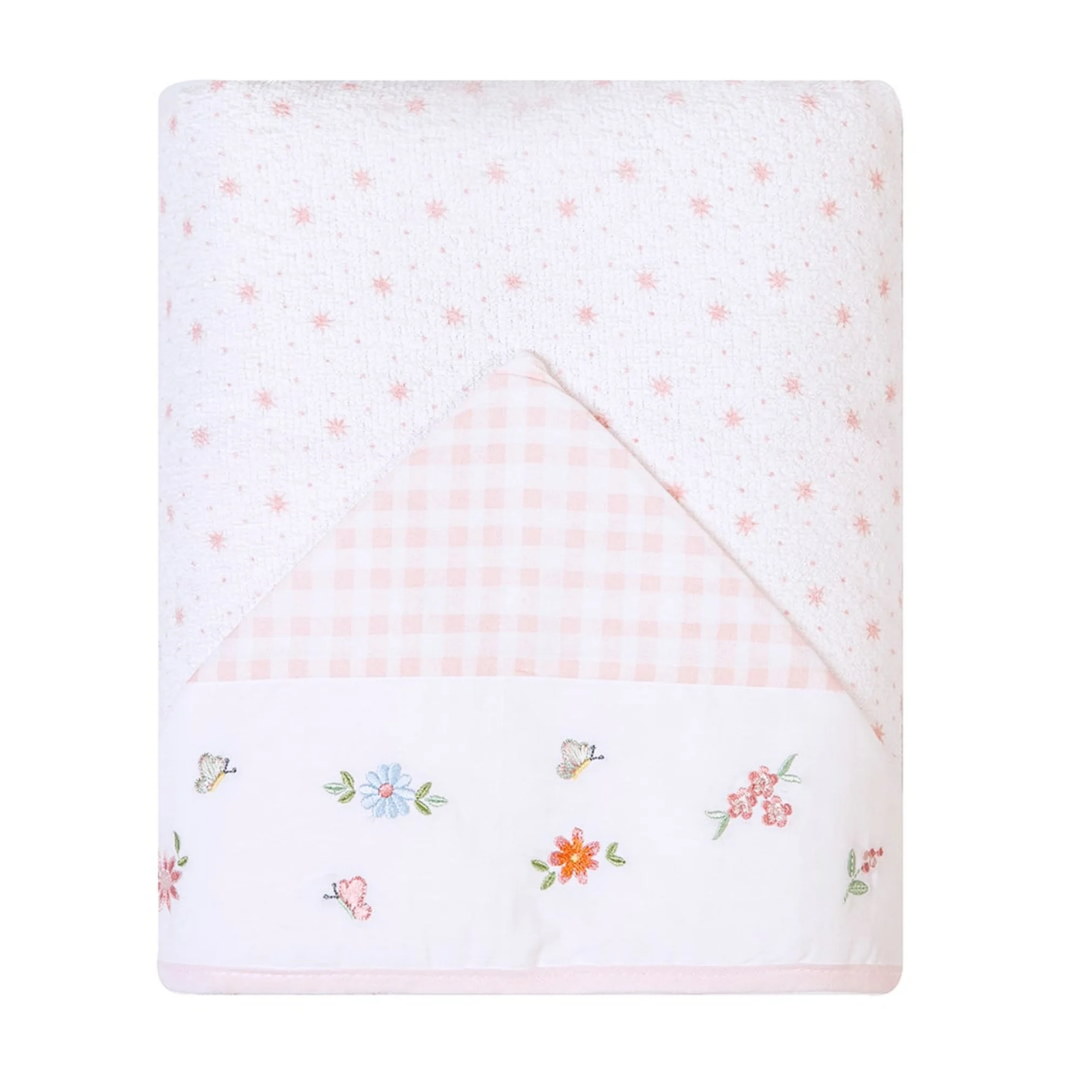 Toalha de Banho Felpuda Bordados Papi Forrada Com Capuz Floralzinho