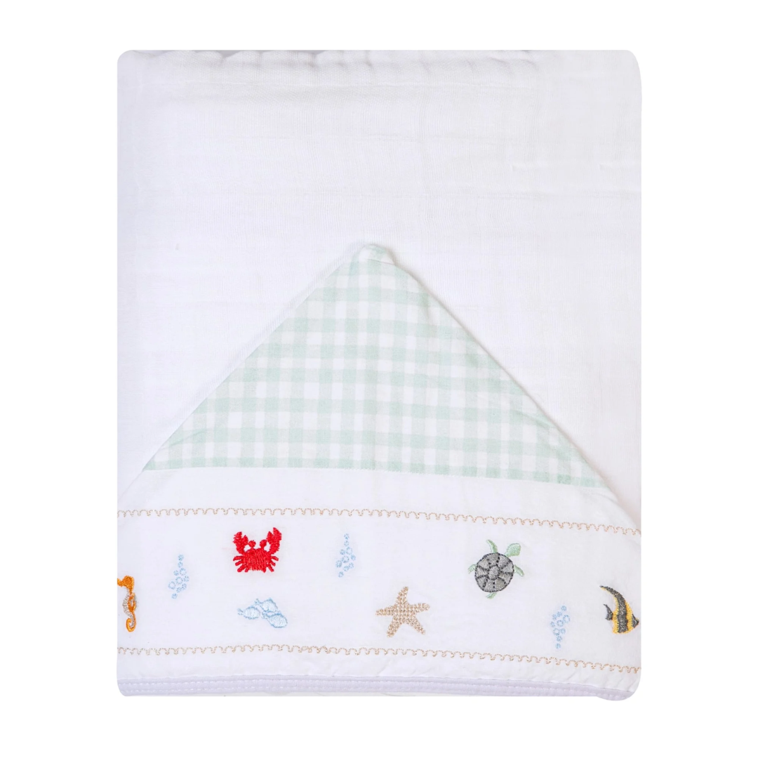 Toalha De Banho Soft Bordados Com Capuz Fundo do Mar - Papi