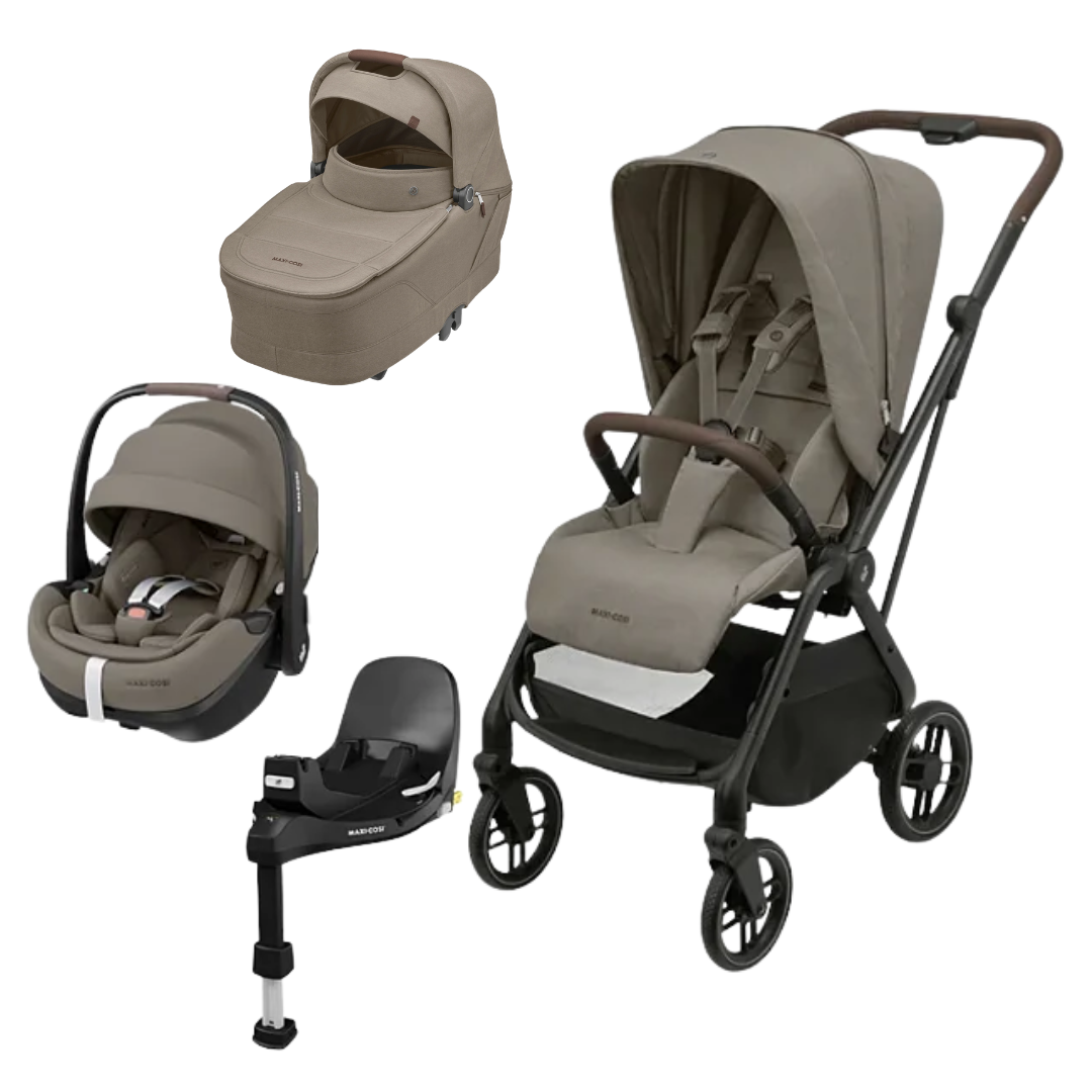 Trio Leona Twillic Truffle com Pebble Pro + Moisés - Maxi Cosi