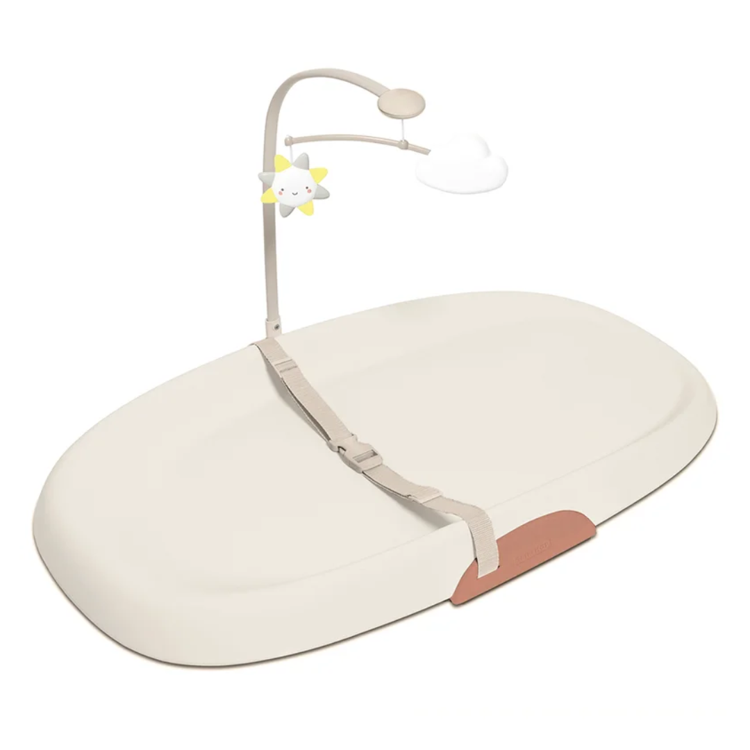 - Base antiderrapante com fixação na mesa de trocas.